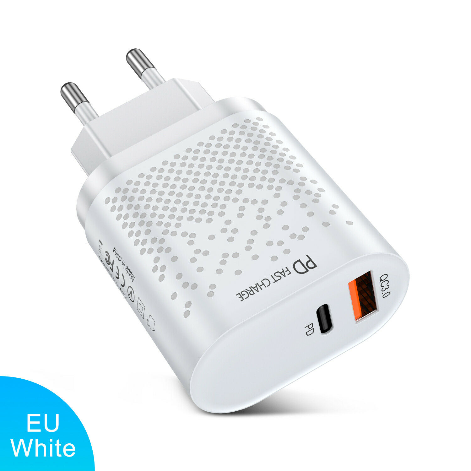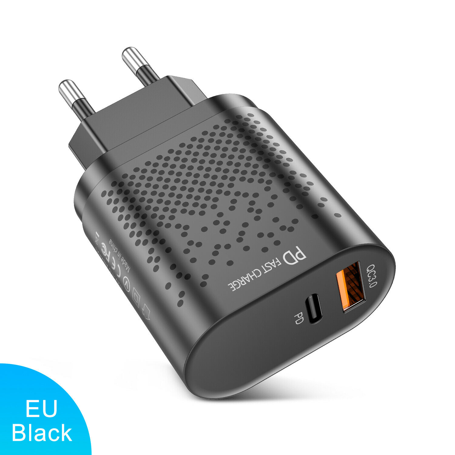 This product does not have a plug. It needs the customer to use the QC3.0 fast charging plug to get the effect of fast charging.