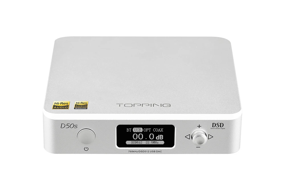 TOPPING D50s DAC is certified by the Japan Audio Society for wired and wireless Hi-Res Audio. The Bluetooth 5.0 CSR8675 chip supports AAC/SBC/aptX/aptX-LL/aptX-HD/LDAC codecs. At the same time, Bluetooth can be easily turned off from the main menu or by using the remote control.