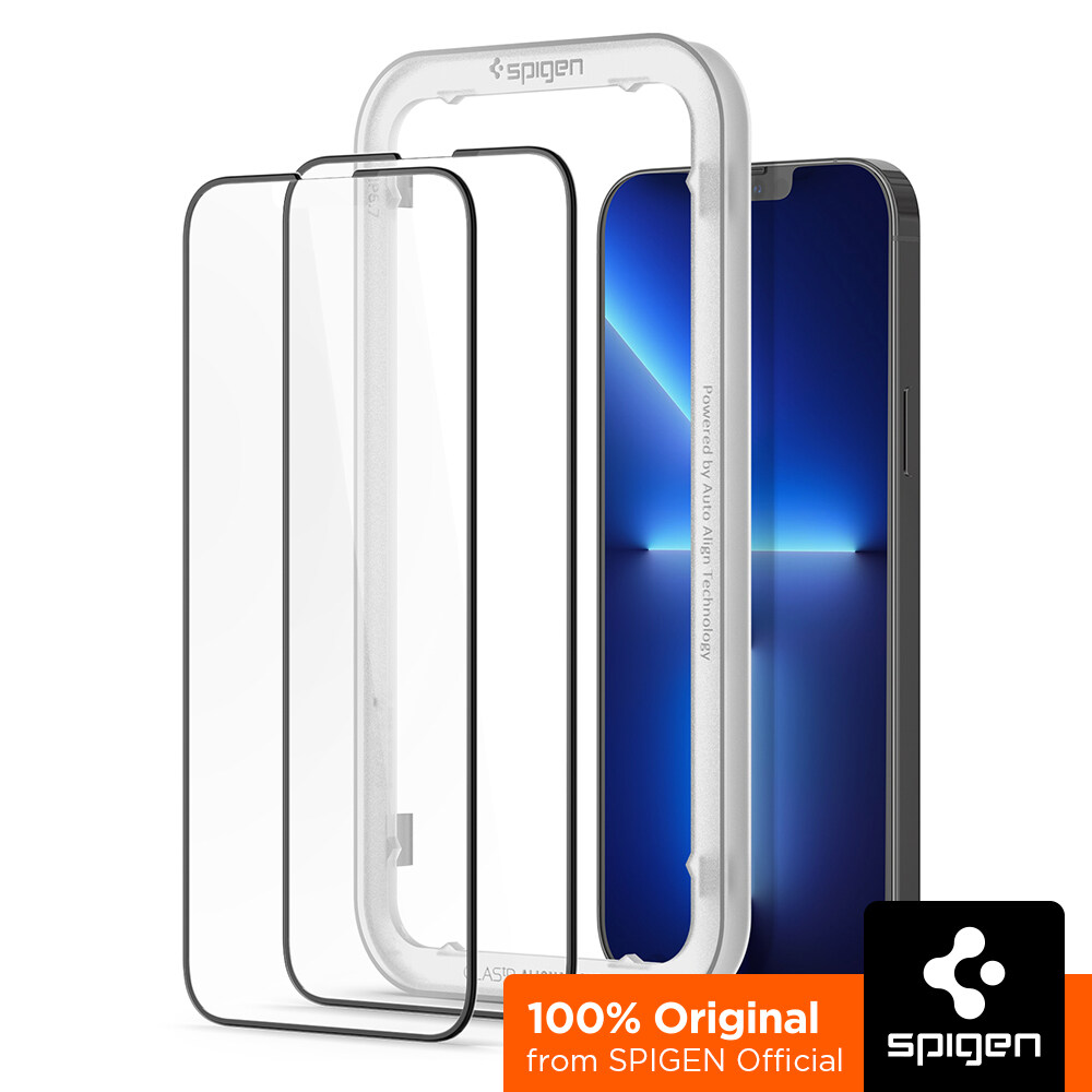 SPIGEN 2PACK Full Coverage Screen Protector for iPhone 14 Series / 13 Pro Max [Align Master FC Black] Easy alignment tray for the perfect glass installation / iPhone 14 Screen Protector / iPhone 14 G