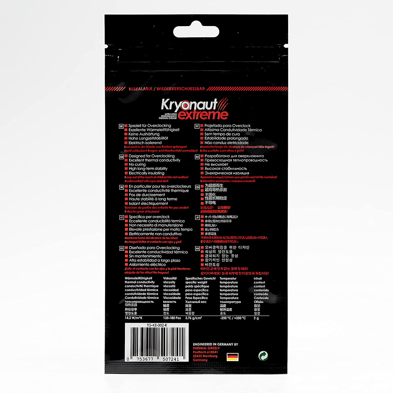 (ALLSTARS : We are Back / Promo) Thermal Grizzly Kryonaut Extreme 2g (TG-KE-002-R) Thermal Compound / Thermal Conductivity 14.2 W/m2K