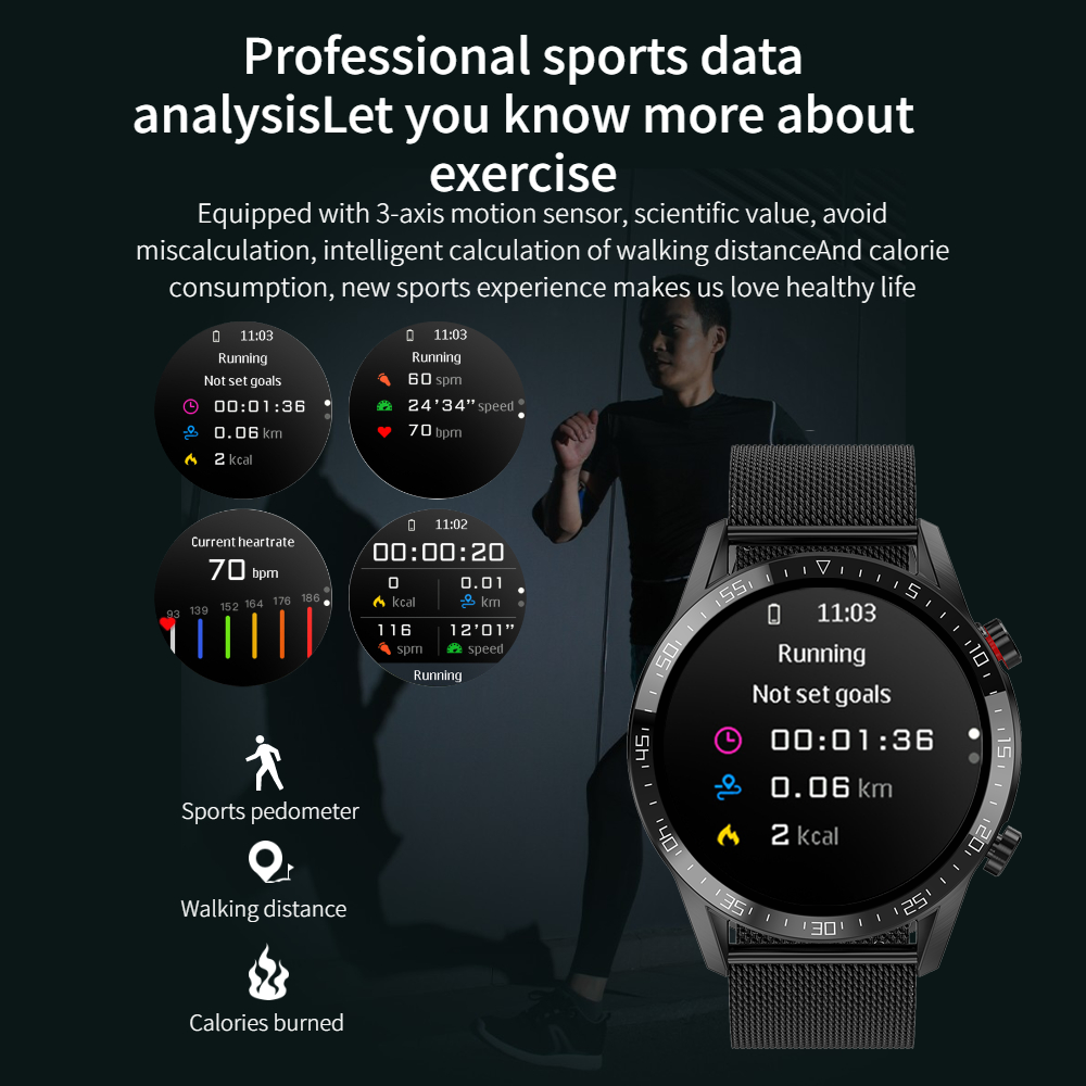 Note: The watch faces shown on the product description may be not among those default watch faces of this watch. Some of them need to be downloaded on the app called "Fundo Health" after the watch is connected to it.