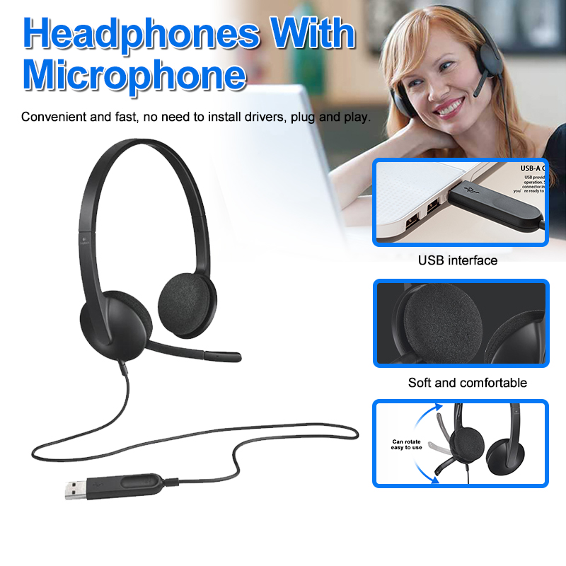 Logitech H340 USB Headset Gaming Meeting Video Wire Headphones with Noise-Cancelling Mic