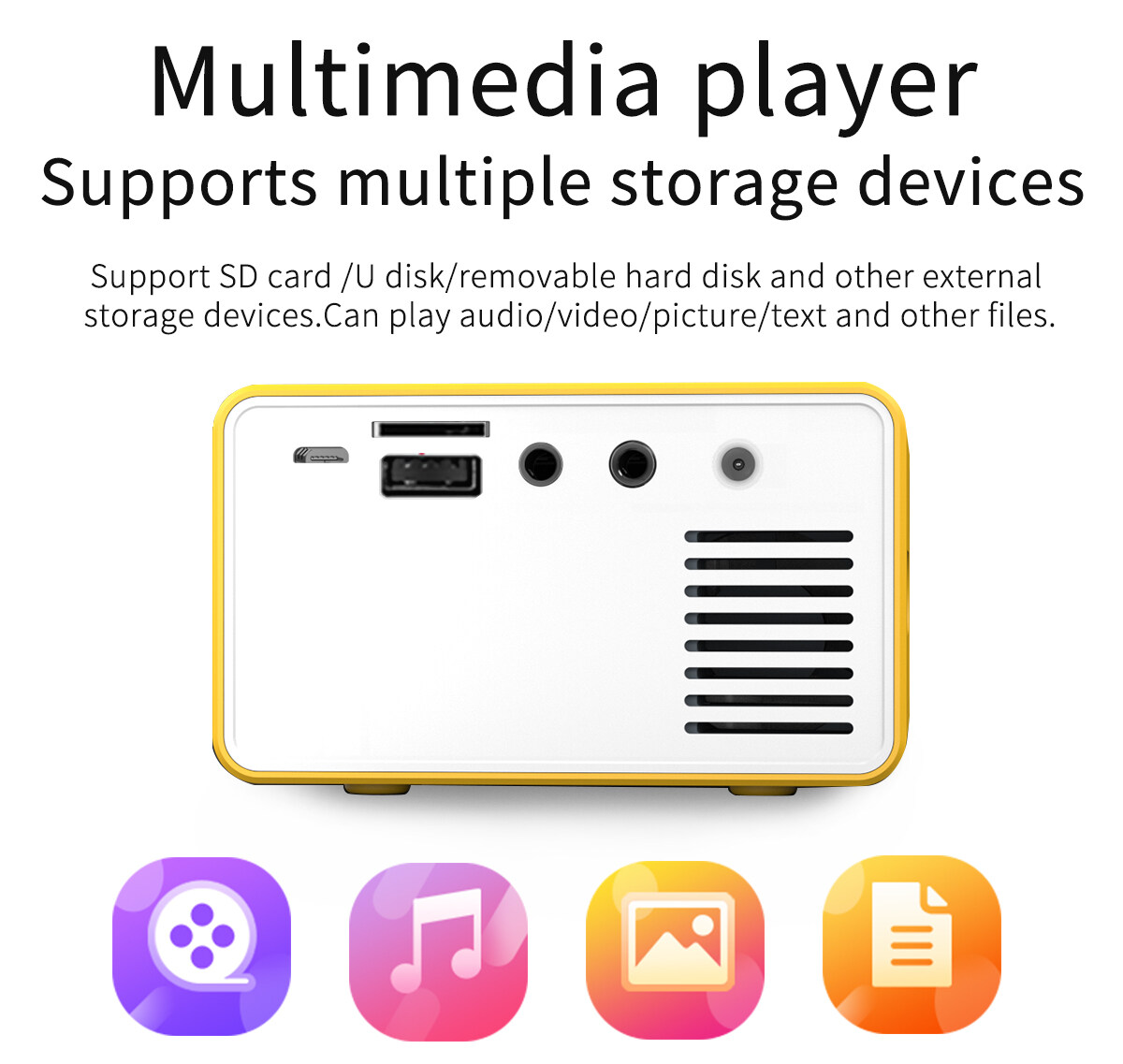 YBC Mini Portable LED Projector 1080P Home Cinema Theater Video Projectors USB for Mobile Phone