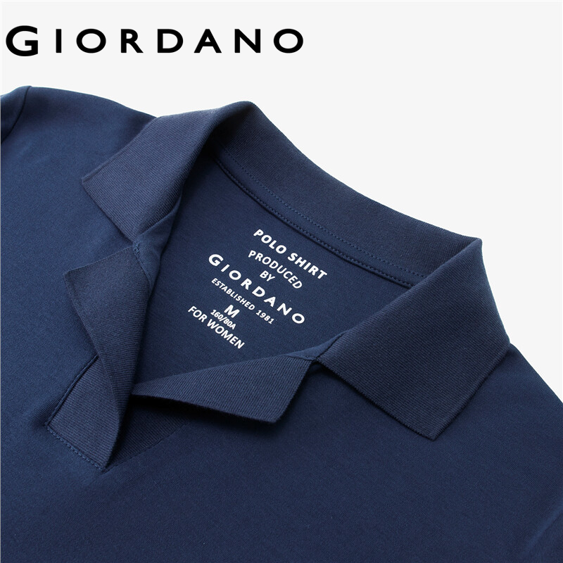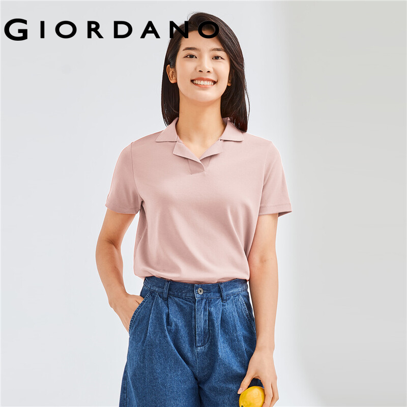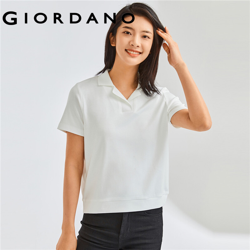 GIORDANO Women Polo Shirts French Collar 100% Cotton Polo Shirts Short Sleeve Solid Color Simple Casual Polo Shirts 05312386