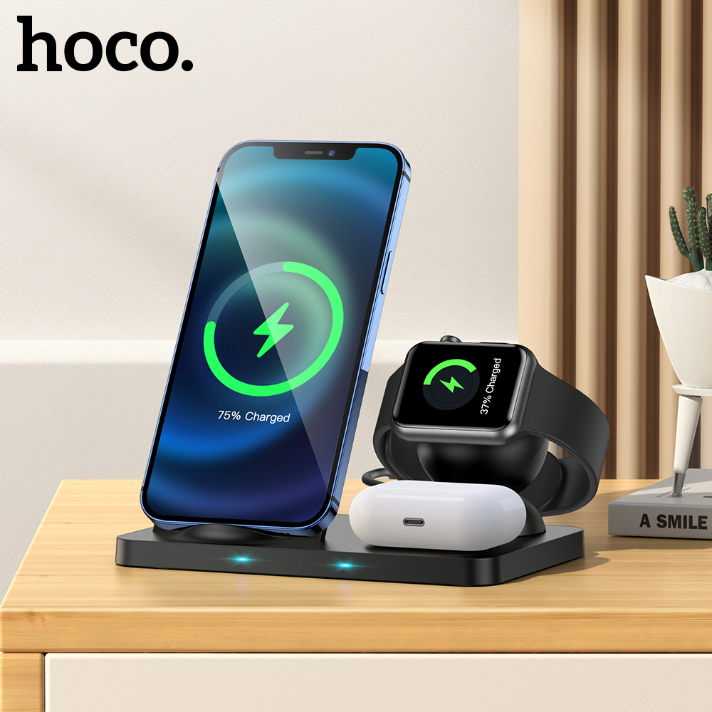 [NEW] HOCO Original Qi 3-in-1 Wireless Chargers 15W for iPhone 13 pro max Samsung S20 Xiaomi Fast Wireless Charging Dock Station Phone Holder for iPhone 12 11 pro max X XS XR 8plus