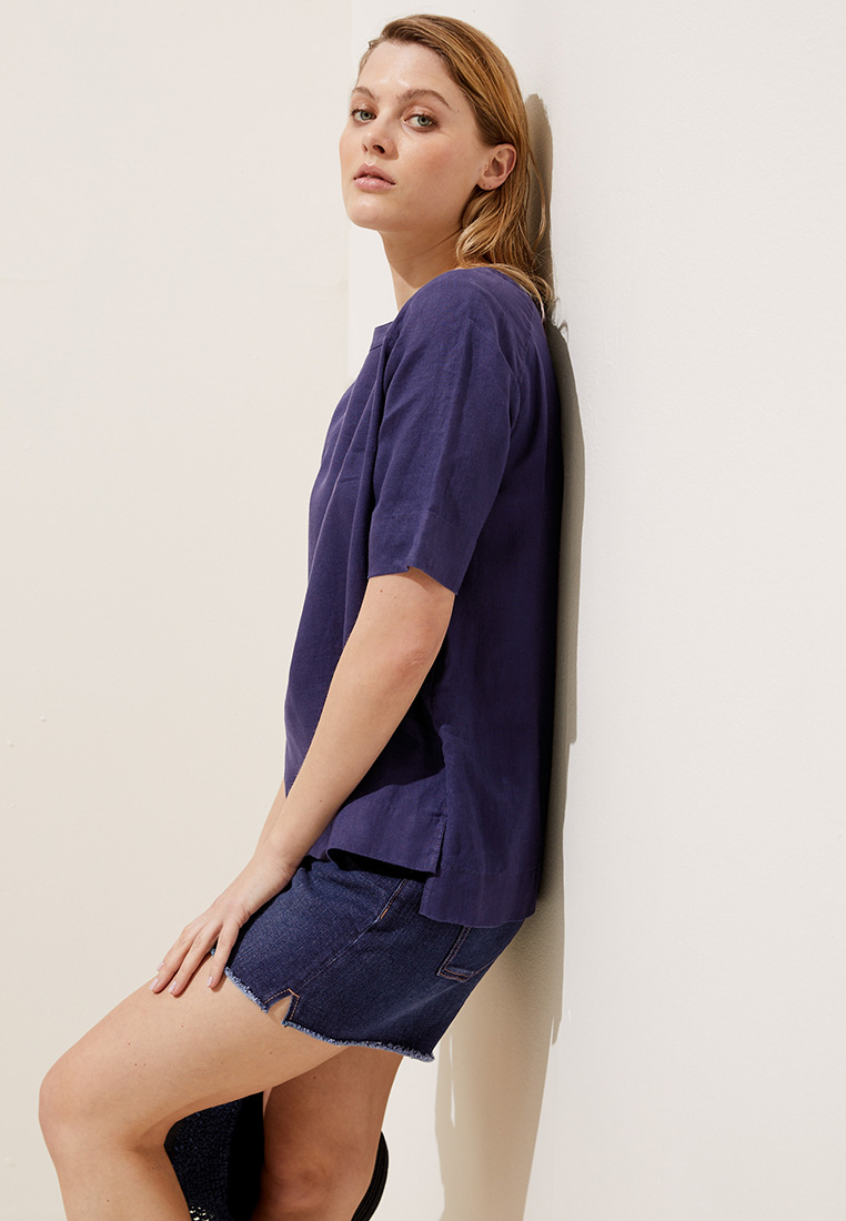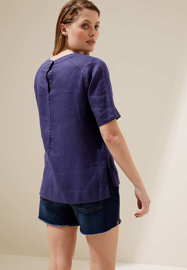 M&S Pure Linen Round Neck Short Sleeve Top