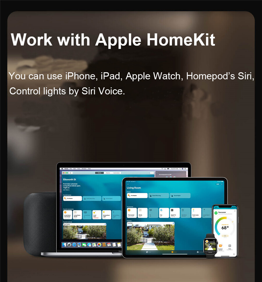 * Support for Apple HomeKit, voice control