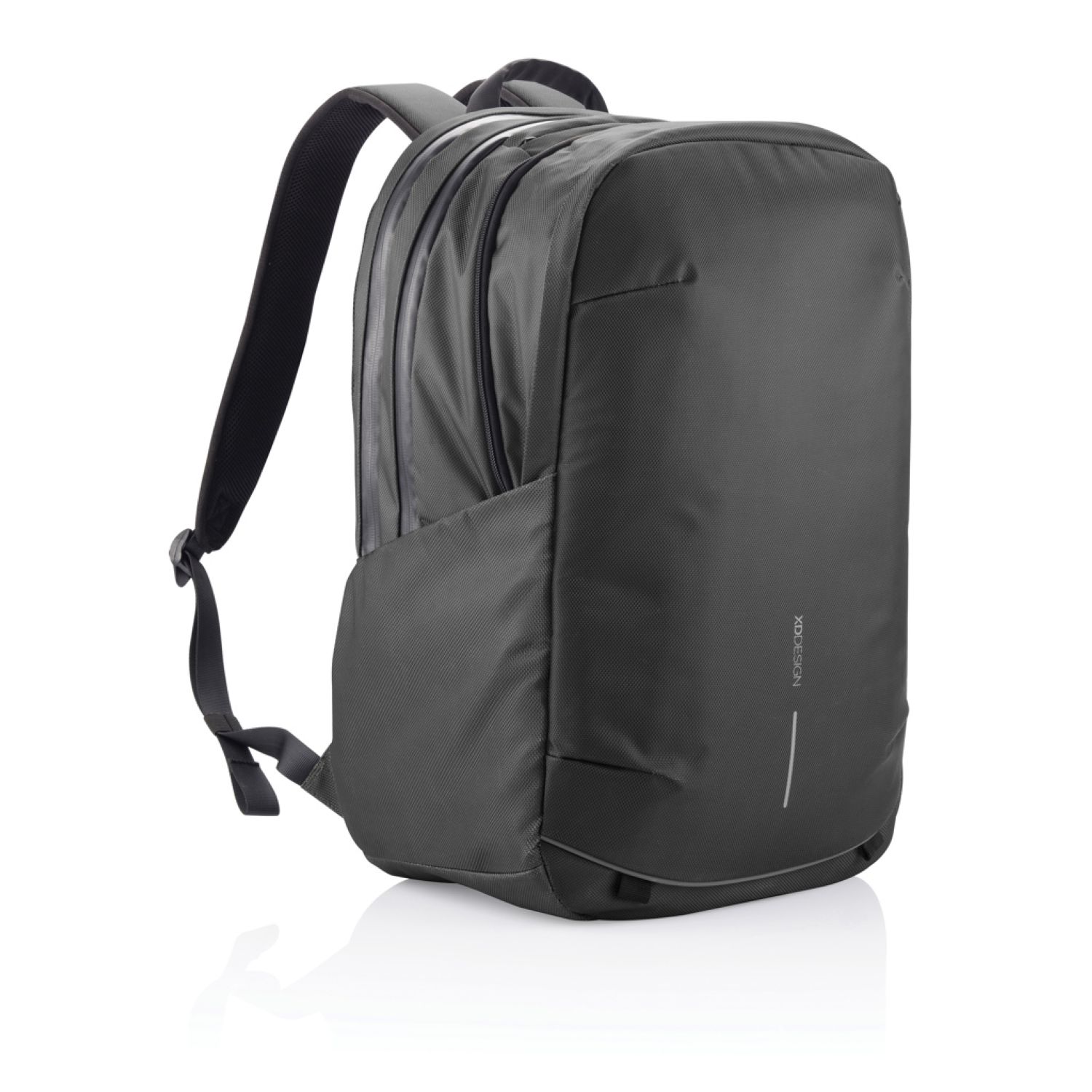 Ready to unplug and explore? With the Bobby Explore, you go from daily commuting to a weekend trip with the same backpack. Durable and weather resistant, this backpack takes safety and comfort to the next level. Your professional belongings are protected with hidden and water repellent zippers, a padded laptop pocket and an interior RFID safety pocket. The padded back panel and adjustable chest stripe enhance breathability and improve posture, relieving the weight from your shoulders. Store everything you need with the expandable front pocket and an additional shoe pocket that can also be used for dirty and wet clothes. In addition, you can find an integrated USB charging port, a cool magnetic zipper puller, a quick access top pocket and external bottle pockets. Bobby Explore is made with recycled materials and Aware™ technology. Each Bobby Explore reuses 91 plastic bottles and saves 54 litres of water in the production process.
