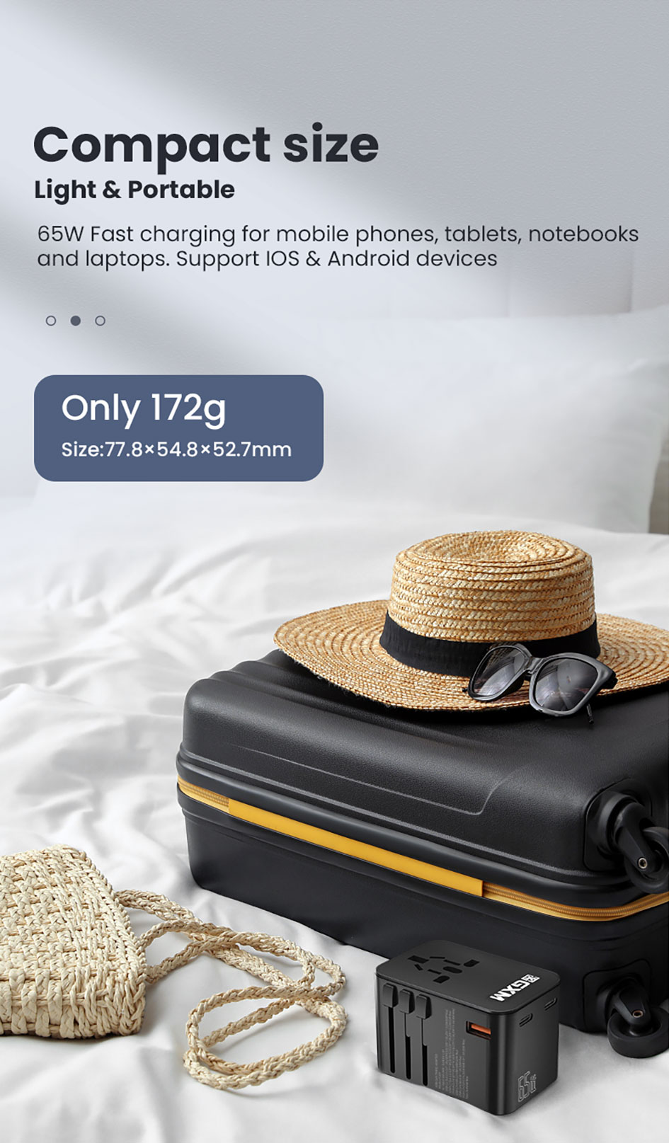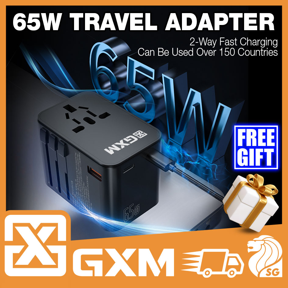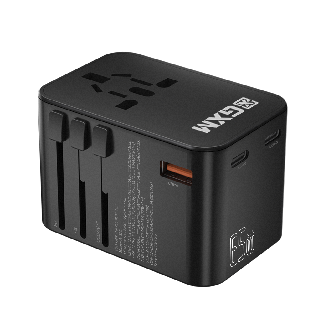 GXM 65W Travel Adapter GaN Wall Charger Fast Charge PD QC Type C USB C EU US UK AU Plug Socket Over 150 Countries Universal Travel Power Charger
