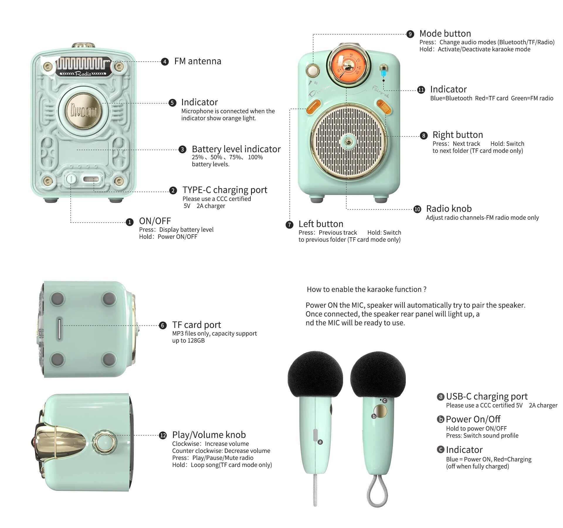 Divoom Fairy OK Bluetooth Speaker with Karaoke Set