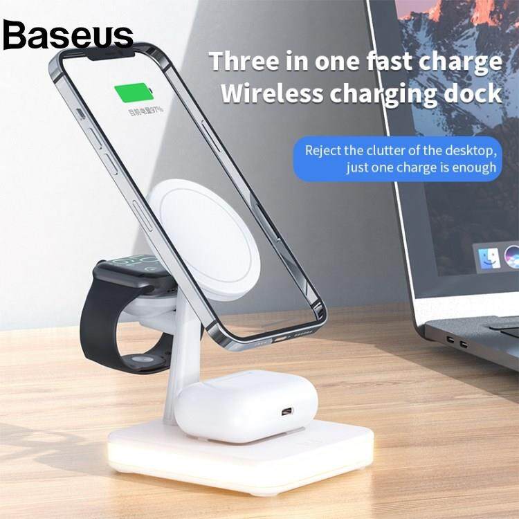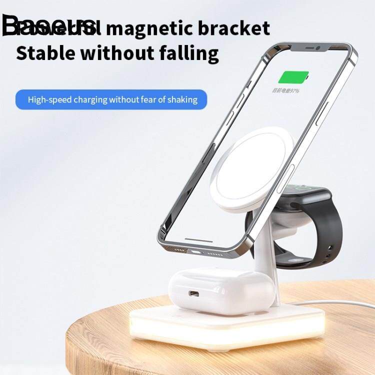 Baseus JJT-980 Desktop Charging Stand 3 in 1 Detachable Magnetic Wireless Charger for iPhone / Apple Watch / Earphones