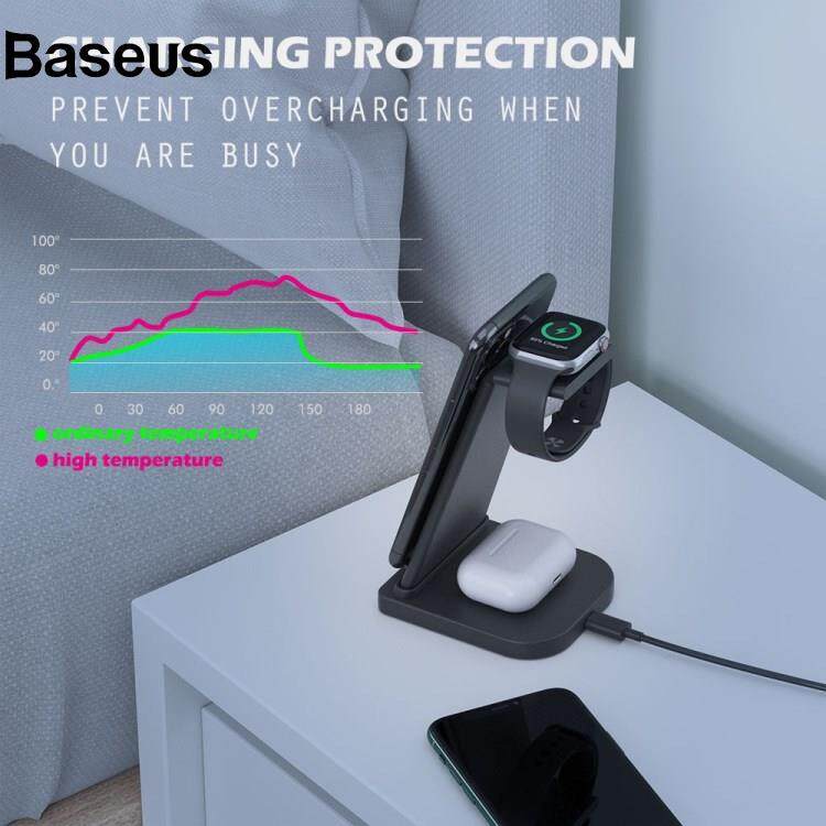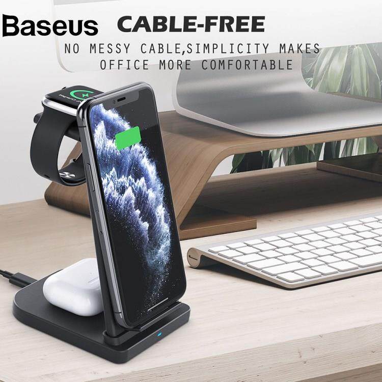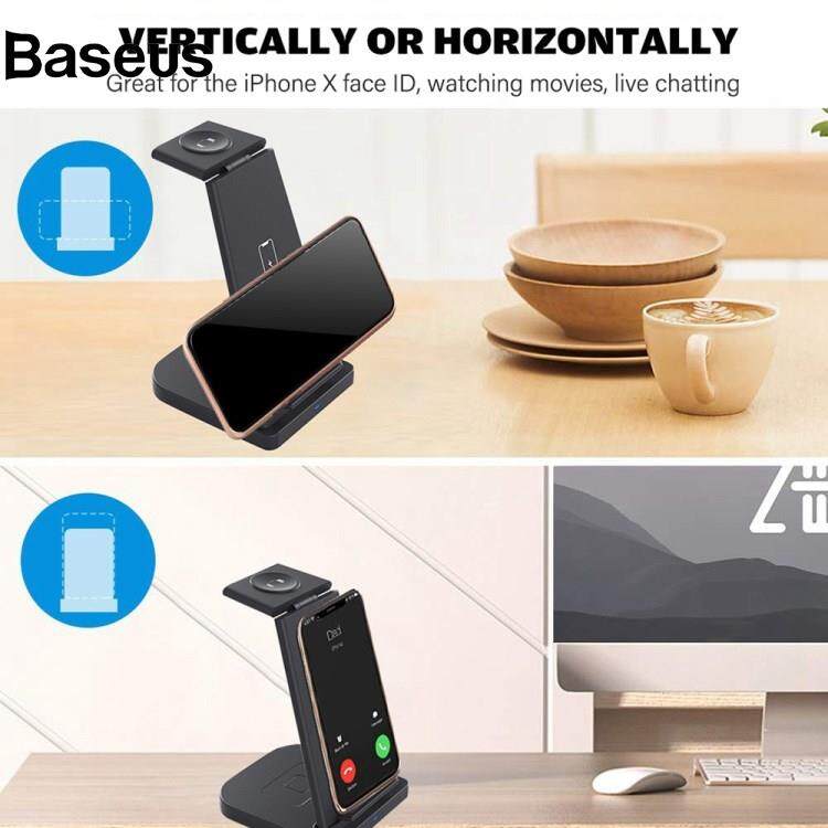Baseus B-12 Universal Desktop Charger 3-in-1 15W Wireless Charging Folding Stand for Mobile Phone / Earphones / Smart Watch