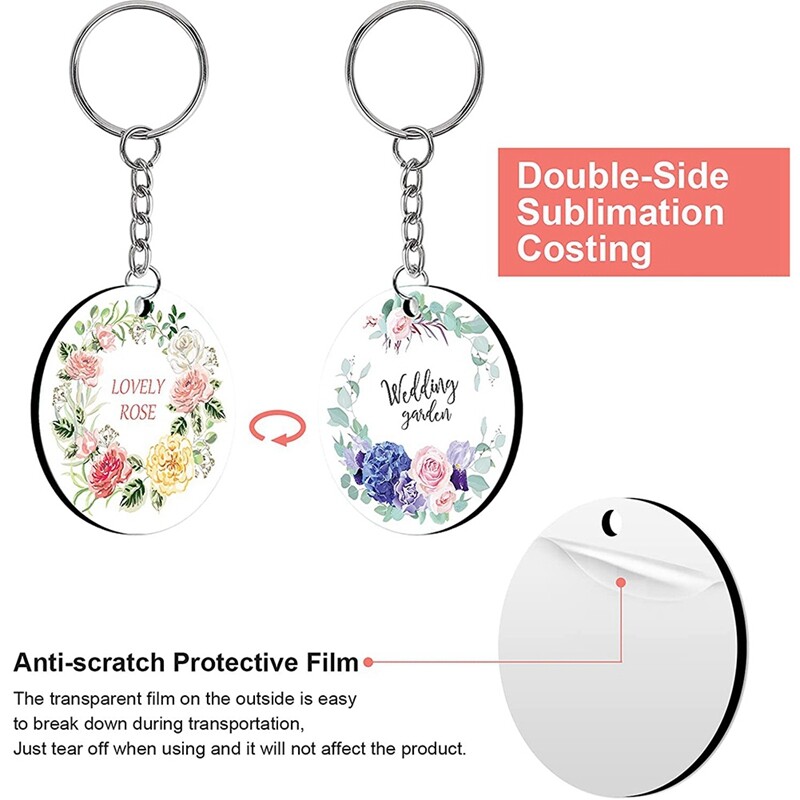 [Easy to Use] - The sublimation blank keychains have protective layer on both sides to prevent scratches, please tear off the layer before DIY, print the image at a temperature of 180 degrees Celsius (356 Fahrenheit) for 40 seconds, you can print on 2 sides, hang on the keychain with tassels, then you will get a beautiful DIY carfts.