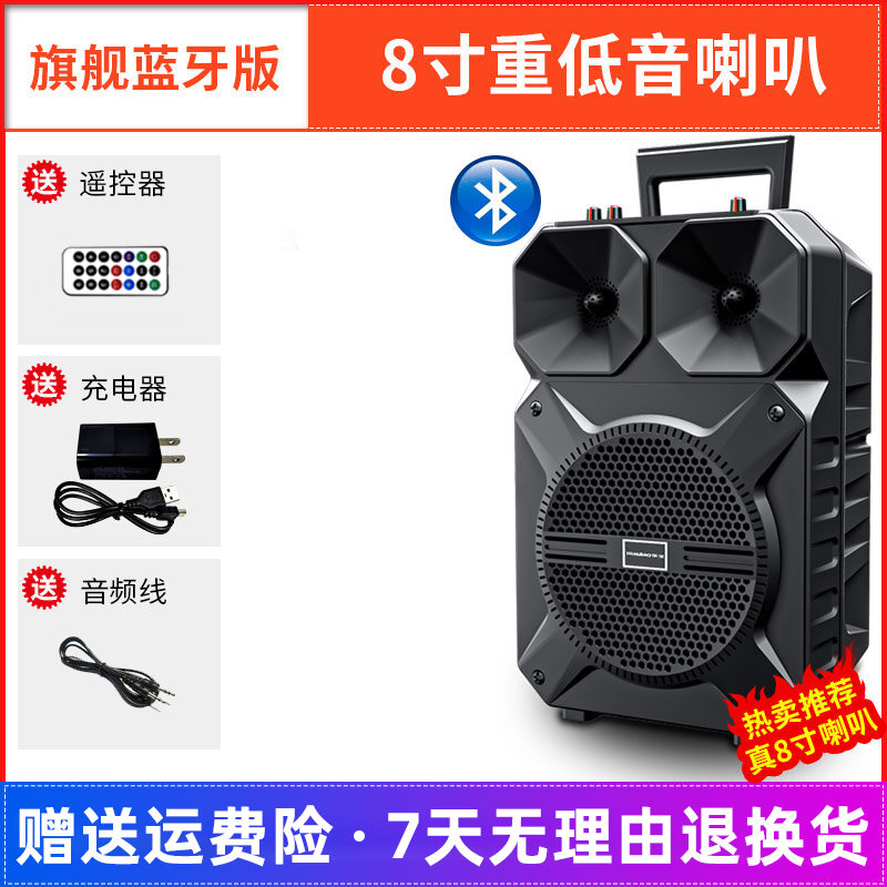 High-Power Pull Rod Square Dance Audio Outdoor Karaoke Bluetooth Speaker with Wireless Microphone Home Singing Subwoofer