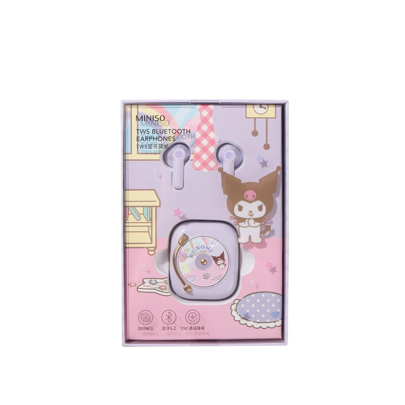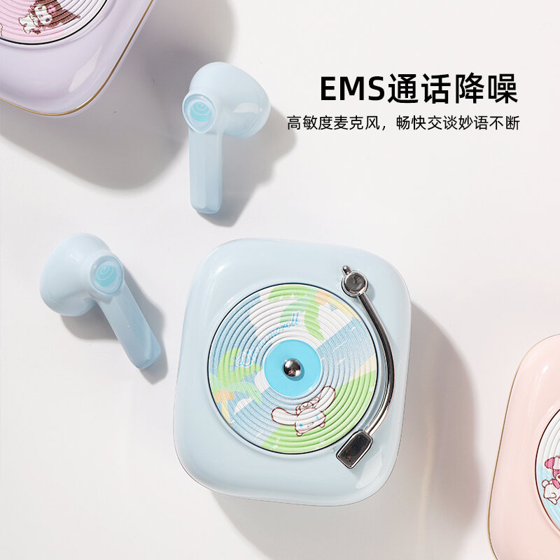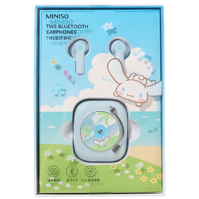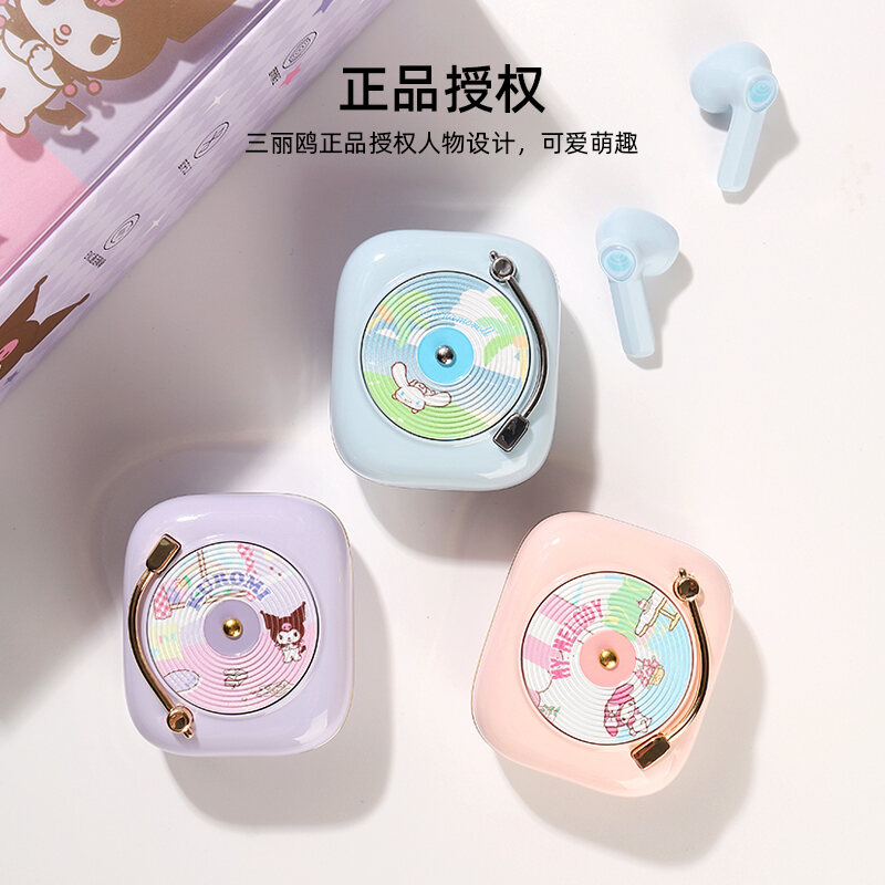 Miniso MINISO Sanrio Clow M Cinnamoroll Babycinnamoroll Amusement Park TWS Bluetooth Headset Retro Record Type