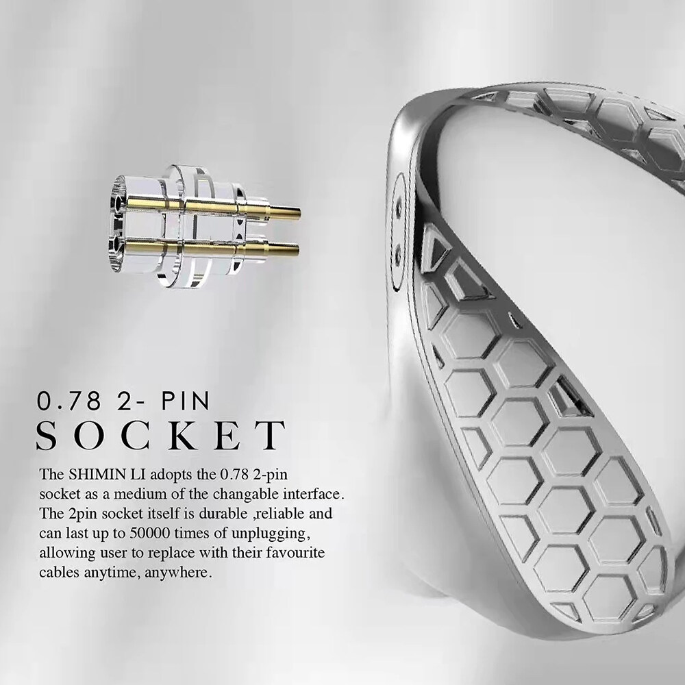 The shimin li adopts the 0.78 2pin socket as a medium of the changable interface. The 2pin socket itself is durable ,reliable and can last user to replace with their favourite cables anytime,anywhere IN THIS PACKAGE SHIMIN LI IEM -1 pair 5N OFC cable -1pC Silicon tips(balanced) -3 pairs Silicon tips(Vocal) -3 pairs