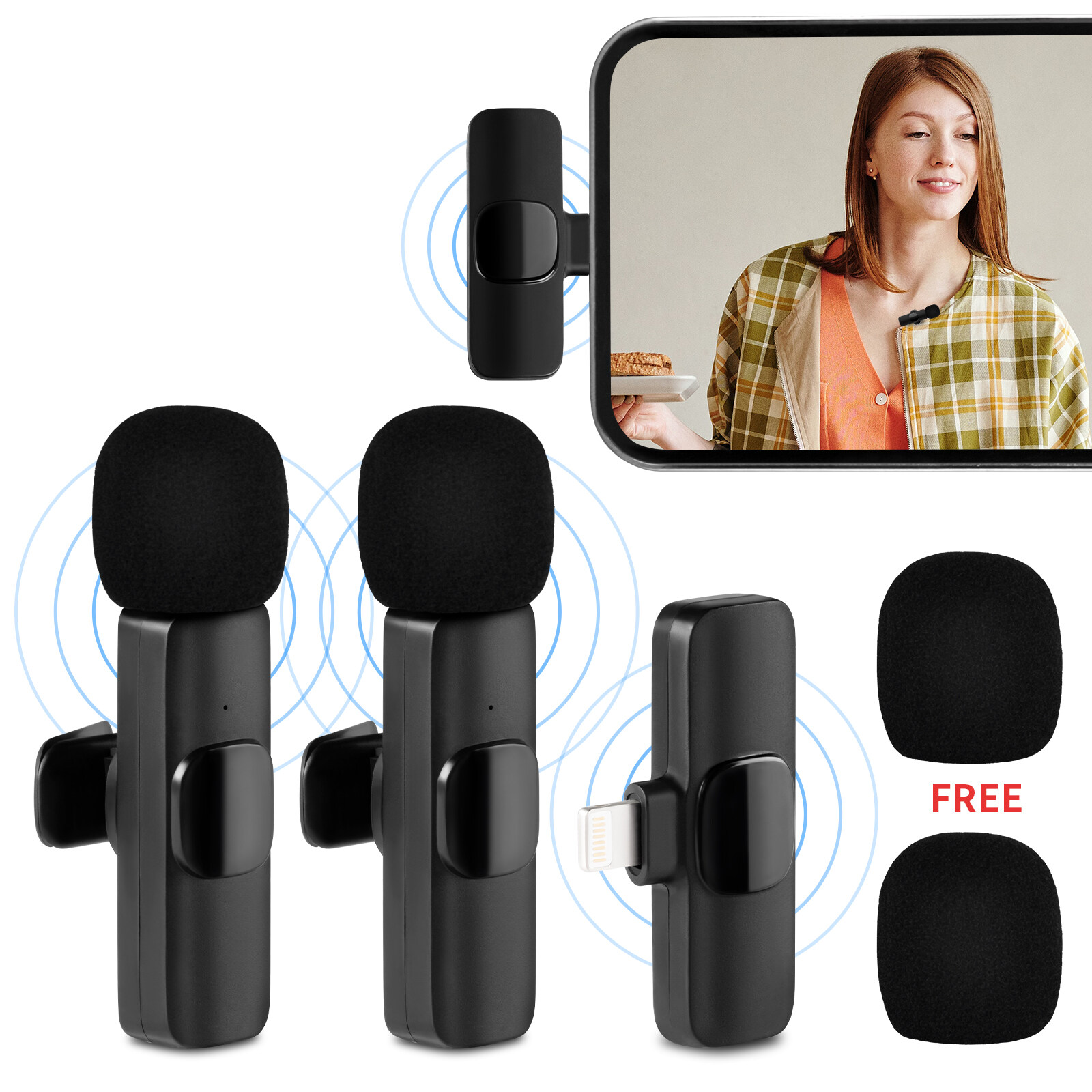 【Connector with wide Compability 】- The wireless lavalier microphone can work with all iPhone , Type-C connector Phone , iPad , Pad, Table.