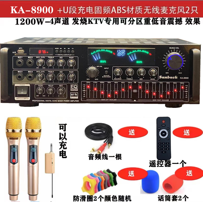7 Channel Power Amplifier Home KTV High Power Professional Stage Audio Bluetooth Karaoke Computer SD Reverb Amplifier