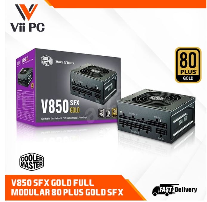 Cooler Master V850 Gold SFX PSU, 80 Plus Gold, Half Bridge LLC + DC-to-DC, 100% Japanese Capacitors, 16 AWG PCI-e Cables, Fully Modular Flat Cables, Semi-fanless Mode