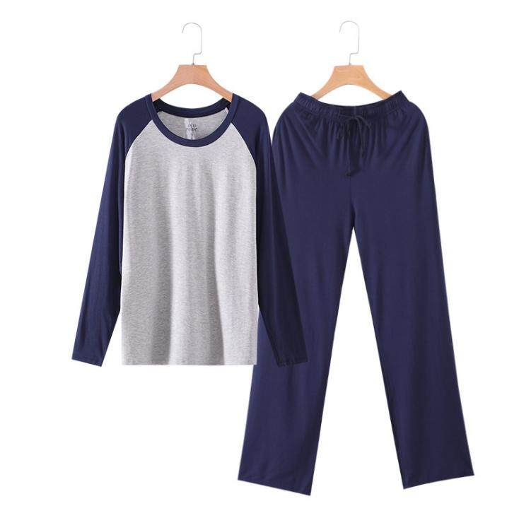 Yehury Autumn Mens Pajamas Set Long Sleeve Casual Soft Shirt Sleep Bottom Pants 2pcs Set Men Bamboo Fiber Home Clothes Plus Size Father's Gift