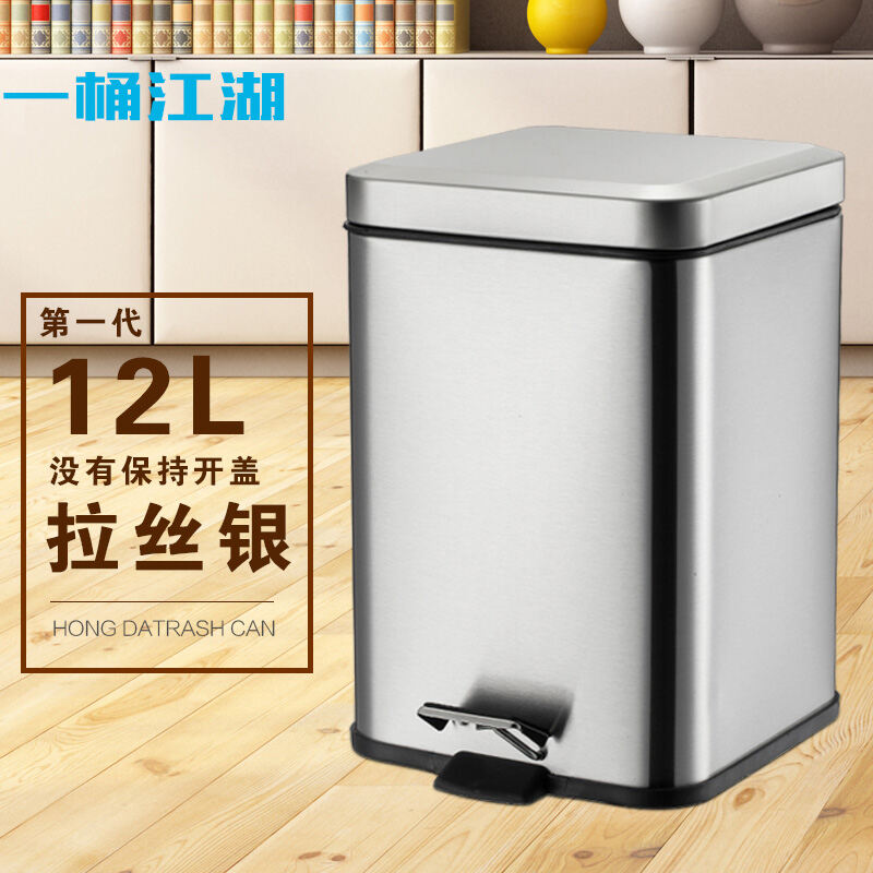 Stainless Steel Trash Can Step-on Kitchen Bathroom Creative Fashion Home Living Room Toilet Bedroom Square Step-on