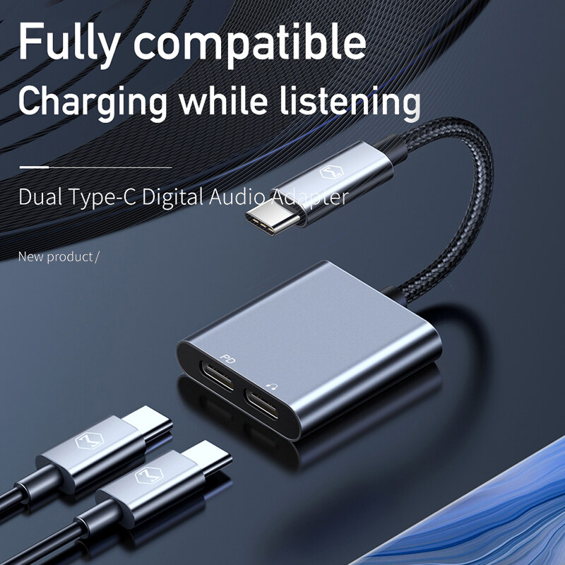 Mcdodo 60W PD USB C To Dual Type-C Headphone Digital Audio Adapter DAC HIFI Aux Cable for IPad Pro Macbook Samsung S10 Note 10 9