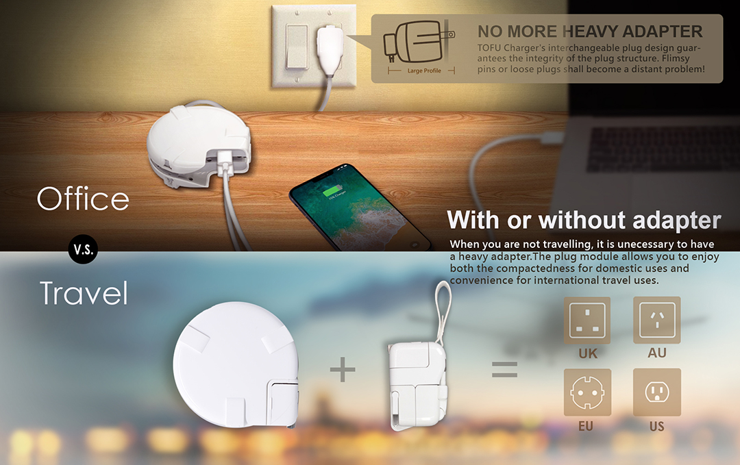 MOGICS SUPER BAGEL Gen3 World Smallest Pocket Size Universal Power Bagel Adaptor Fast Charge PD Type C Plugs Travel Office Home