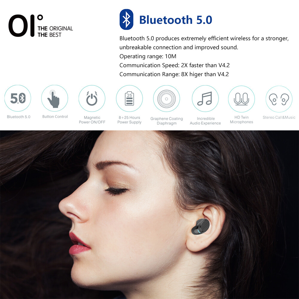 【New】OI AirSounds One True Wireless Earbuds Bluetooth 5.0 1600mAh Ultra Large Capacity LCD Display 6H Playback&Fast Charging One-Step Pairing Touch Sensor with Volume Control Noise Cancellation Deep B