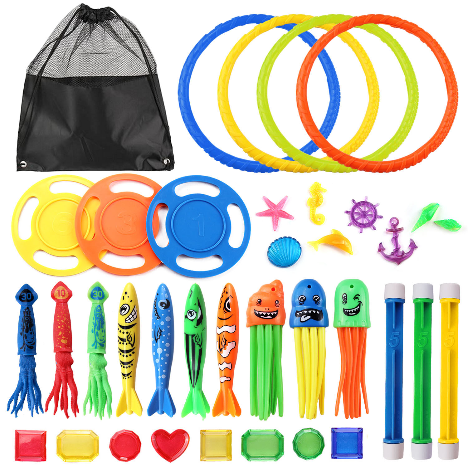 33PCS Funny Kids Diving Toys Set Underwater Water Play Toys with Storage Bag for Boys Girls Summer Games Swimming Pool Party