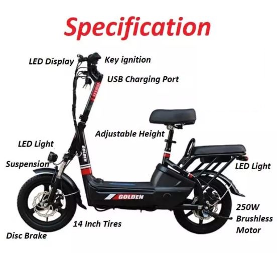 Brand new electric scooter for sale. Comes with dual seats design. User friendly design with USB port which is very convenience travel to work, sending child to school. Specification:-